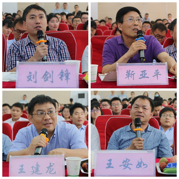 赵延安书记、杨章平教授、刘剑锋教授、王安如博士、靳亚平教授、王建龙教授为获奖者颁奖
