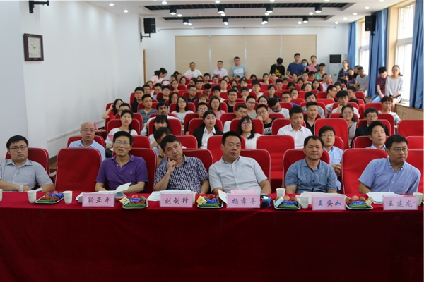 6月20日下午,学院第二届优秀毕业研究生学术论坛在107学术报告厅隆重举行。论坛以 “绿色·创新·共享”为主题,扬州大学动物科学与技术学院院长杨章平教授、中国农业大学动物科学技术学院刘剑锋教授,大北农科技集团股份有限公司研究院副院长、科技合作部总监王安如博士,我校动物医学院靳亚平教授、食品学院副院长王建龙教授担任评委。来自动物遗传育种与繁殖、动物营养与饲料科学、养殖等专业的12位博硕士研究生在论坛上作报告。院领导赵延安、孙超、王晓娟、王力及部分教师、研究生100余人参加了本次论坛。论坛开幕式由副院长凌飞教授主持。