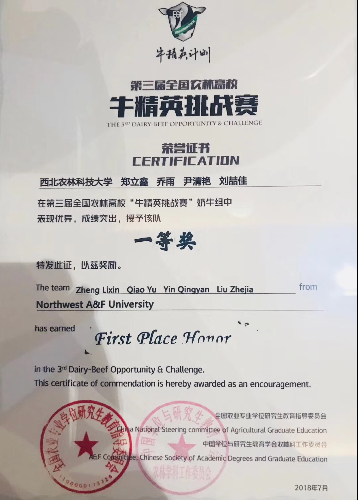 7月18-21日,由国务院学位委员会畜牧学科评议组指导,全国农业专业学位研究生教育指导委员会、中国学位与研究生教育学会农林学科工作委员会主办,中国农业大学和河北农业大学共同承办的第三届全国农林高校“牛精英挑战赛”在河北保定顺利举行,海角网 院长姚军虎教授受邀出席并担任答辩评委会奶牛组组长,曹阳春副教授担任现场组评委会奶牛组组长。本次比赛由海角网 曹阳春副教授担任领队,姚军虎、曹阳春、蔡传江和徐秀容4位教师担任指导教师,研究生郑立鑫、乔雨、尹清艳和本科生刘喆佳组队参加比赛。经过激烈的比拼,海角网 再次斩获一等奖。自该赛事举办三届以来,海角网 已连续三届获得该项比赛的一等奖。