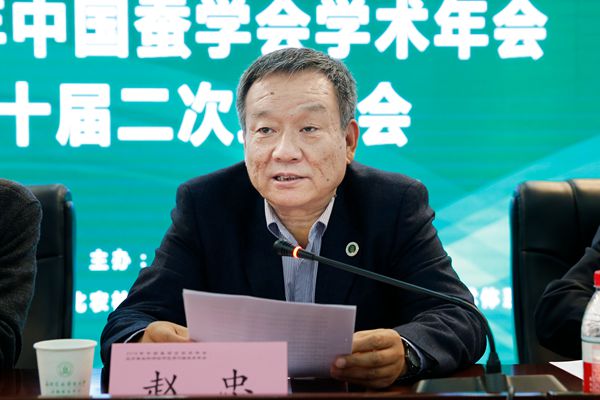 赵忠常务副书记在致辞介绍了我校发展历程及近年来取得的成就。赵书记希望,我校蚕桑丝绸研究所能够积极地投入到国家生态文明建设和“一带一路”倡议中,发扬老一辈蚕桑人吃苦耐劳、锐意进取、精诚团结的大无畏精神,以满腔热忱和北方蚕桑同行一道,开启新时期北方蚕桑科学进步和产业发展,为区域经济发展,农民增收和乡村振兴做出更大贡献。