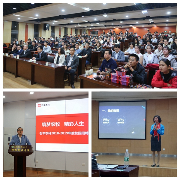 防止助后懈怠,做好励志教育。“天行健,君子以自强不息。”各类资助对于大学生而言,不应只是雪中送炭的“救命草”,更应是砥砺前行的“强心针”。动科学院充分利用强大的对口企业资源,把握秋季招聘时机,邀请资助合作方的优秀校友以及企业老总为同学们带来了一场场直击人心的励志教育课。近日,“新希望六和”集团于我校举办“新希望六和”奖学金颁奖典礼,旨在“奖学励志、共育英才”。更有扬翔股份董事长莫金枝女士、石羊集团人力资源部总经理常立红先生带来生动的励志成才报告会,同学们纷纷表示十分受益。