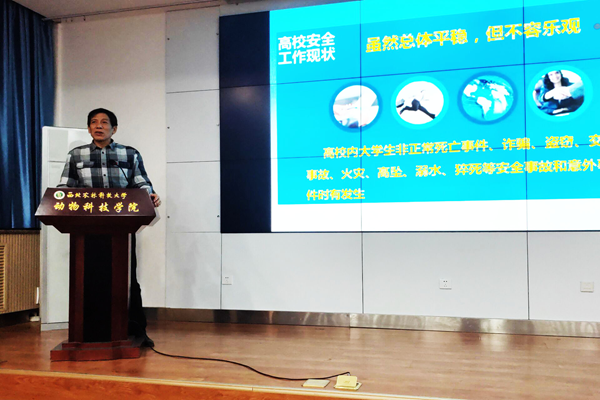 12月18日,学院研究生第九党支部为落实学校党委研究生工作部、科研院、保卫处《海角网 开展研究生“实验安全教育月”活动的通知》,增强团队研究生的安全意识,营造更安全的实验室环境,特邀请校保卫处副处长王云峰作题为“消除隐患、防治危难——高校安全管理与实践”的报告。陈玉林副校长、张恩平教授、王小龙副教授、张德刚老师出席会议。