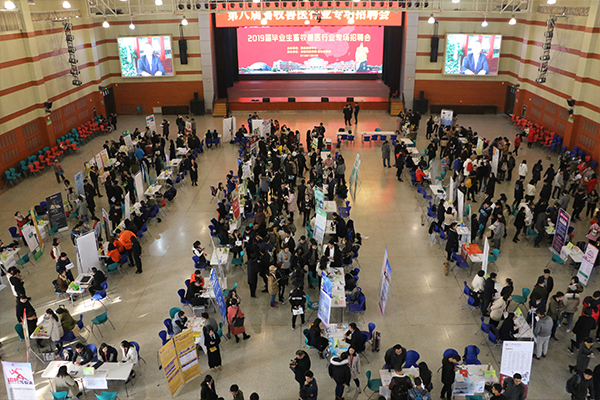2018年11月,学院举办第八届畜牧兽医行业专场招聘会,来自全国17个省(自治区、直辖市)的65家企事业单位参加招聘会,累计提供就业岗位3564个。