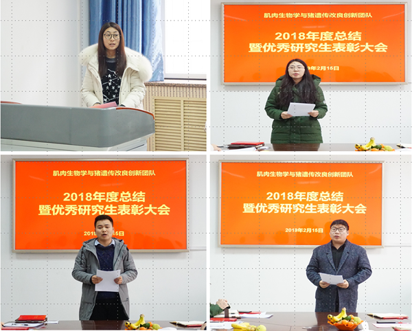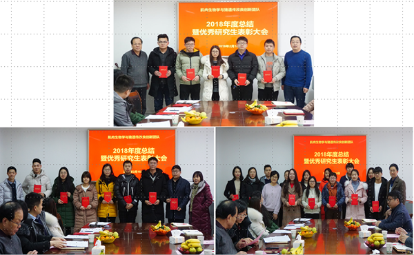 2月15日下午,肌肉生物学与猪遗传改良创新团队在学院104会议室召开2018年度总结暨优秀研究生表彰大会。团队在校师生共计69人参加会议。
