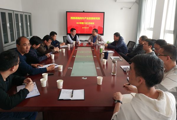 在研究院第二次工作会议上,昝林森教授与海原县农业农村局局长田风奇,副局长张广平、刘一祖、马德友,我校驻点专家林清、成功、杨武才等,就研究院的启动运行前的准备工作进行了对接交流,对研究院2019年工作进行了安排部署,讨论了我校承担编制的《中卫市牛产业发展规划》《海原县肉牛产业发展规划》初稿,提出了修改意见和建议。会议强调,研究院要立足海原,面向宁南山区乃至西北地区,围绕打造现代肉牛业全产业链,建立健全研究院六大功能,致力于肉牛产业六大支撑体系建设,全力推进海原县高端肉牛选育改良和产业化开发。昝林森教授还就海原县引进的安格斯肉牛开展高效繁育和健康养殖等面临的问题进行了技术咨询和辅导培训。