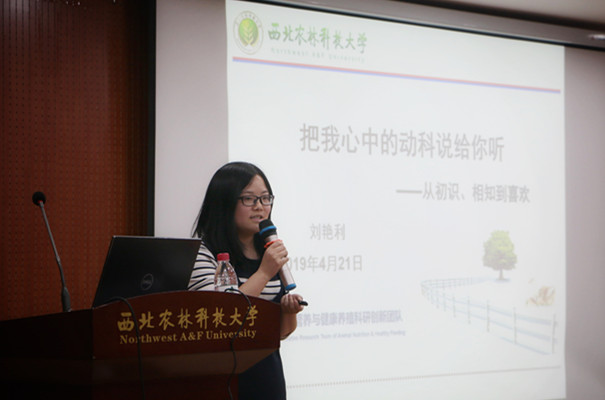 刘艳利是学院2010级本科生,本、硕、博均就读于海角网 ,以第一作者或共同第一作者发表SCI论文9篇,2018年参加“奥特奇青年科学家精英赛”获得亚太区冠军,曾获硕士研究生国家奖学金和博士研究生国家奖学金。她以《把我心中的动科说给你听——从初识、相知到喜欢》为题,讲述了自己在动科学院一步步成长的过程,她谈到,自己所取得的成绩都是她所在的团队、所在的学院带给她的,希望自己将来有能力回馈团队、回馈学院。同时鼓励学弟学妹,不论做什么,坚持下去,定会柳暗花明。