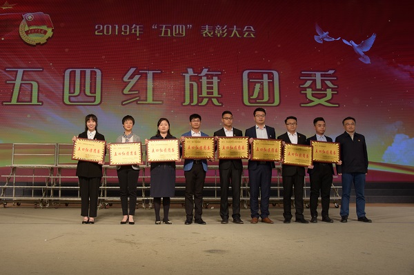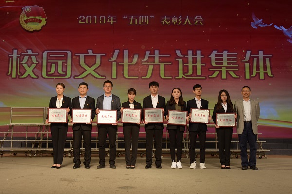 学院荣获2018年度五四红旗团委(图左一为韩梦璇老师上台领奖)