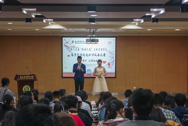 为了更好地培养西农学子爱家爱国的情怀,为他们搭建展现家乡风采,传承文化根脉的优质舞台,5月5日,由校团委主办,动科学院团委承办的第二十届“校园之春”文化艺术节之“情寄故乡 礼赞祖国”家乡民俗文化知识风采大赛决赛在北绣南报告厅圆满举办。马克思主义学院副院长王海成副教授,人文社会发展学院苏燕平副教授,公共艺术发展中心教师刘威和耿亚静担任评委。校团委副书记欧渊博、动科学院党委副书记王力作为嘉宾莅临现场观赛。经过初赛复赛的层层选拔,共有来自内蒙古、陕西、吉林、江苏、四川和河南的7支队伍进入本次决赛。