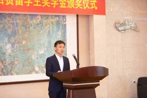 颁奖典礼上,雷新建博士受邀代表获奖留学生发言。他认为这份奖学金代表着祖国对在外留学人员的无限关怀和厚爱,对海外留学生是莫大的鼓舞和激励。雷新建博士也代表留学生感谢祖国,感谢韩方导师的辛勤培养和父母亲人的支持帮助。同时,他表示今后要立足本职岗位,继续倍加努力,为实现中华民族伟大复兴的中国梦贡献自己的一份力量。