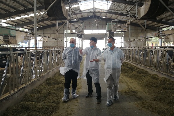 参观过程中,胡仁超先生还向王力副书记一行介绍了公司的科学养殖理念和现代畜牧生产设备的工作流程,并就奶牛的育种、青贮饲料制作、精准饲养、疫病防控等具体技术问题与杨小军教授进行了深入探讨交流。同时,双方还就专业思想教育、学生实习等事宜达成合作意向。