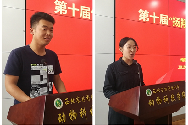 开班仪式上,校友、扬翔集团招聘经理助理陈令祥宣读了第十届“扬翔班”成员名单。动科156班雷杰同学代表第九届“扬翔班”成员发言,他对公司和学院的培养表示衷心感谢,说道:通过在“扬翔班”实习,我们收获了很多,一方面学习到了许多以前没接触过的专业知识与应用实践,另一方面提高了自己的动手能力,在“扬翔班”的实习经历进一步挖掘了我们的潜力,考验了个人的综合素质。”动科161班王钰晨同学作为新一届“扬翔班”学员代表发言。她表示作为本届“扬翔班”学员,将谨记“诚朴勇毅”校训,服从企业的安排与要求,深入了解行业发展,加强实习实践,做到知行合一。
