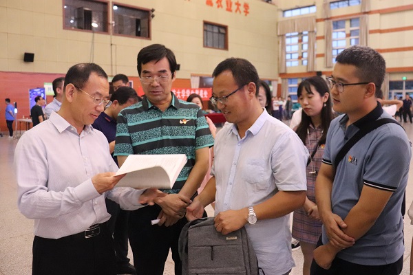 校党委副书记闫祖书翻阅学院迎新材料