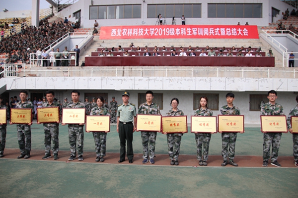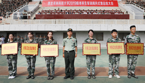 阅兵式上,在教官们的统一指挥下,动科学子表演了分列式、擒敌拳、警棍术等军事科目和手语操《感恩的心》。动科学子身姿挺拔、气宇轩昂,队列方阵动作整齐划一,步伐矫健有力,展现了昂扬向上、拼搏进取的青春风采。在为期14天的军训中,2019级全体本科新生坚持不懈、团结一心,顽强拼搏。姚军虎院长、曹军会书记、昝林森教授、曹斌云教授以及王力副书记在军训期间,多次赴训练场亲切慰问,为参训新生加油鼓劲,并送去牛奶、羊奶、自热火锅等畜牧科技产品。在学院领导的大力支持和全体同学的共同努力下,学院获评2019级本科生军事训练“宣传报道先进单位”和“内务卫生先进单位”,并在2019级新生爱国歌曲大合唱比赛中荣获三等奖。