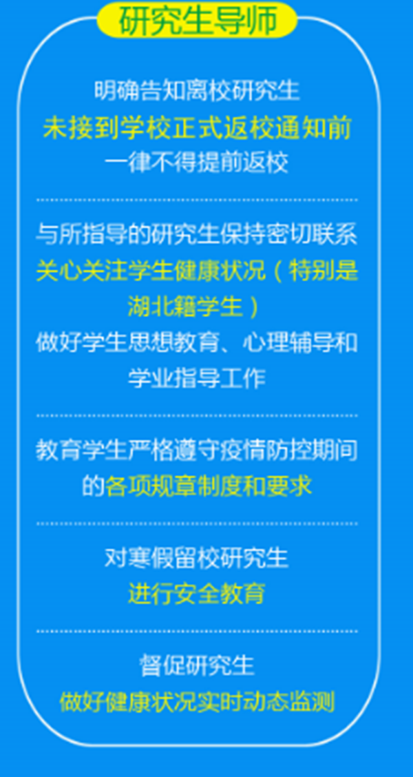 【疫情严防控 动科在行动】图解:学校对学生、研究生导师、辅导员、班主任在疫情防控期间的要求