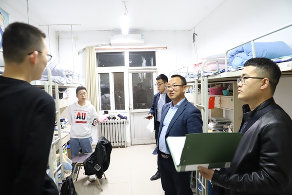 为进一步加强学院学风建设,创建文明宿舍,督促学生养成良好的生活卫生习惯,构建安全、文明、整洁的宿舍环境。11月4日晚8点,学院党委副书记王力及全体辅导员深入学生宿舍,了解学生们的宿舍生活学习状况。