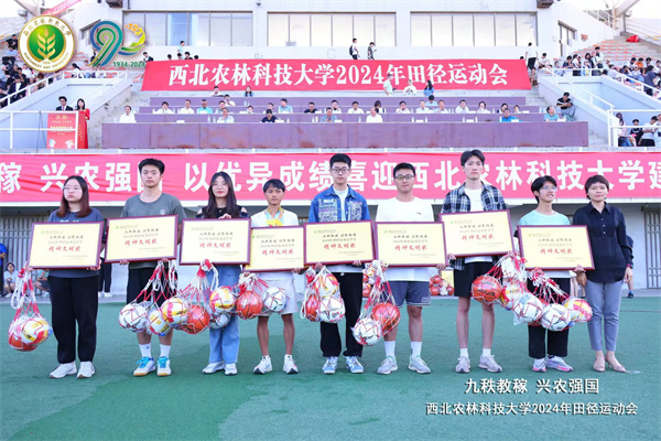 荣获2023年度大学生阳光体育运动先进集体总分第一名(图右二为学生会主席团成员何嘉延同学代表学院领奖)