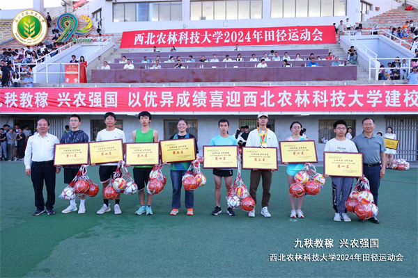 荣获学生男女团体总分第七名(图左三为学生会体育部助理夏令同学代表学院领奖)