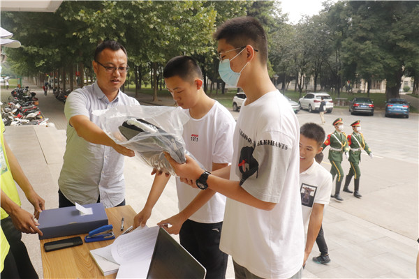 院党委副书记王力发放新生礼包