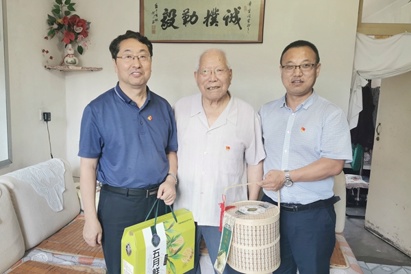 为迎接中国共产党成立99周年,弘扬党的光荣传统和优良作风,充分体现党组织对党员的关心和爱护,在“七一”到来前夕,学院党委副书记、院长姚军虎,党委副书记王力来到退休老党员侯文通、马章全家中,将党的关怀与祝福送到他们的心坎上。
