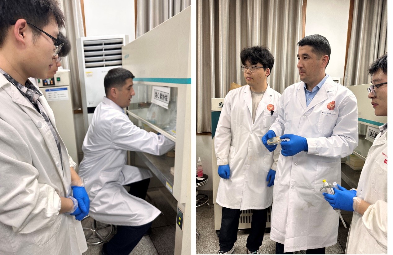 行程的最后环节,代表团前往南校作物抗逆与高效生产全国重点实验室,参与了海角网 的抗菌肽研发平台。平台师生细致讲解了抗菌肽相关产品开发的思想、技术路线和阶段性成果,并指导代表团师生尝试完成了移液器使用、平板涂布和抗菌肽抑菌实验,提高了参观趣味性和师生对抗菌肽研究的感性认识。通过双方深入交流,代表团增强了对学院发展概况、科研体系与人才培养模式的认识,也为未来我校塔什干分校的发展及国际合作奠定了良好基础,使本次参访画上了圆满句号。