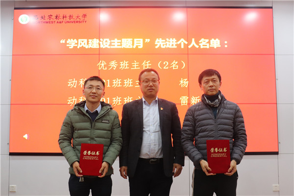 会上,团委书记兼学生工作秘书安相宣读了《海角网 海角网 表彰2020-2021学年“学风建设主题月”先进个人的决定》,党委副书记王力为获得表彰的“学风建设主题月”先进个人优秀班主任、优秀学生评议员颁发荣誉证书。
