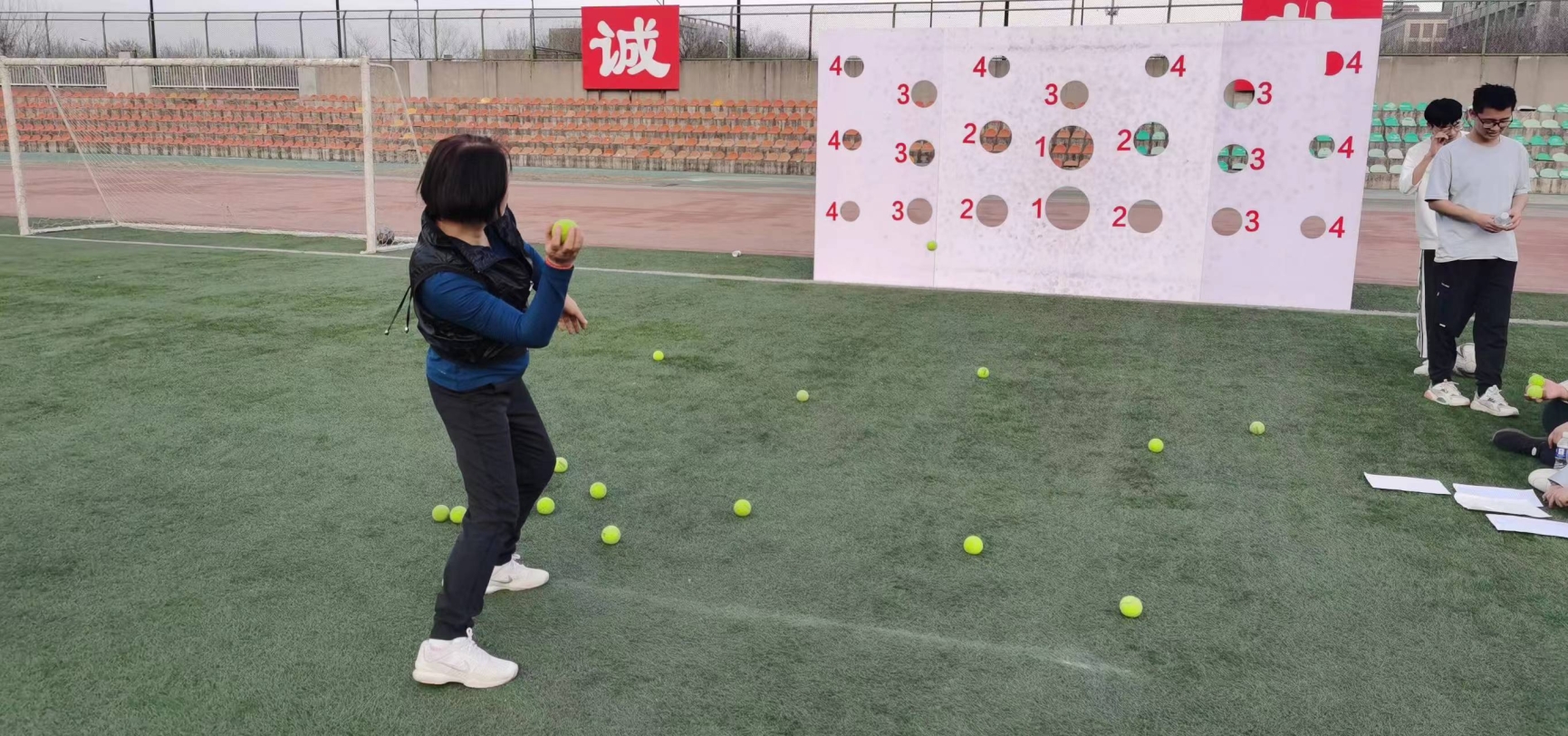 扔网球投准接力