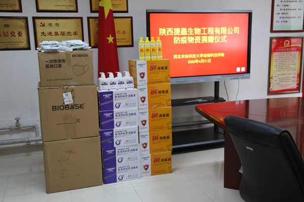 陕西捷晶生物工程有限公司为学院捐赠防疫物资