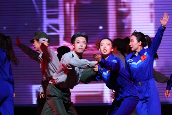 舞蹈中,学院舞蹈队以青春昂扬整齐划一的舞蹈动作,寓意丰富的情节编排,极高难度的技巧设计和饱满真实的情绪感染力展现了动科学子的美好情怀,而他们或凝重、或欢喜、或欣慰的表现力,更是博得了观众的阵阵掌声。