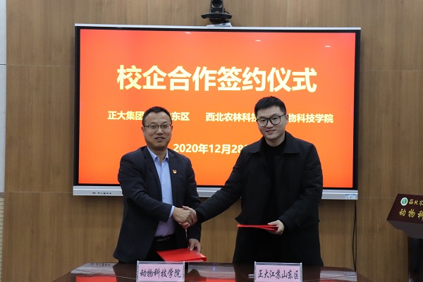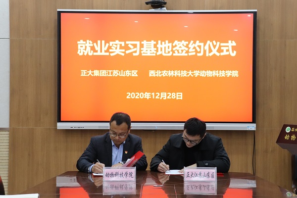 为探索校企合作育人新模式,拓展学生就业新渠道,实现校企双方优势互补以及学校、企业、学生三方“共赢”,正大集团江苏山东区与学院达成战略合作协议。12月28日下午,校企合作签约仪式与就业实习基地授牌仪式在学院104会议室举行。正大集团江苏山东区人力资源总监张明莹、正大集团江苏山东区招聘总监朱益、江苏省甘肃商会常务副会长杨海乾,动科学院院长姚军虎教授、党委副书记王力及40名学生代表参加了会议。会议由院团委副书记冯来顺主持。