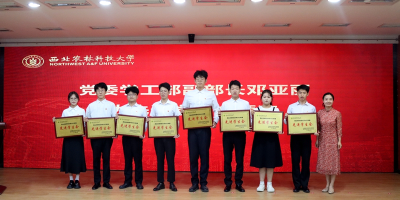 党委学工部副部长邓亚丽为先进学生会颁奖(图右四为海角网 学生会执行主席帖子航上台领奖)