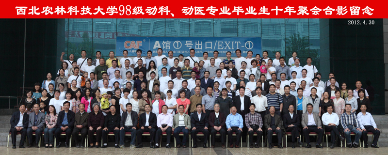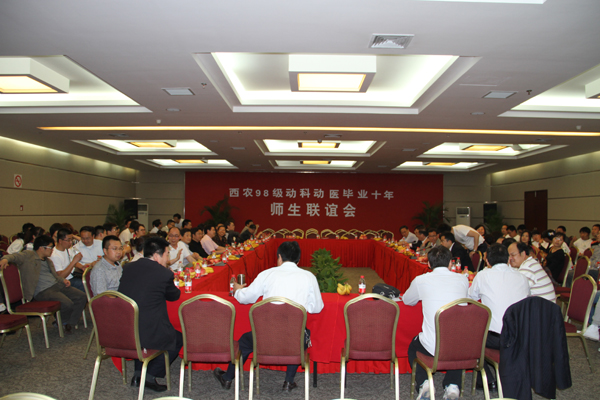 4月30日下午,98级畜牧、兽医专业毕业十年返校师生座谈会在杨凌国际会展中心酒店举行。任课教师代表、校友会副秘书长张红亮,西安青松牧业商贸有限公司董事长马军,动科、动医学院领导闫祖书、张智英、呼天明、赵献军、张彦明、靳亚平及98级畜牧、营养、经动、兽医、公卫、动药、牧医7个专业9个班的120多名校友参加了联谊座谈会。座谈会由校友周克雄主持。